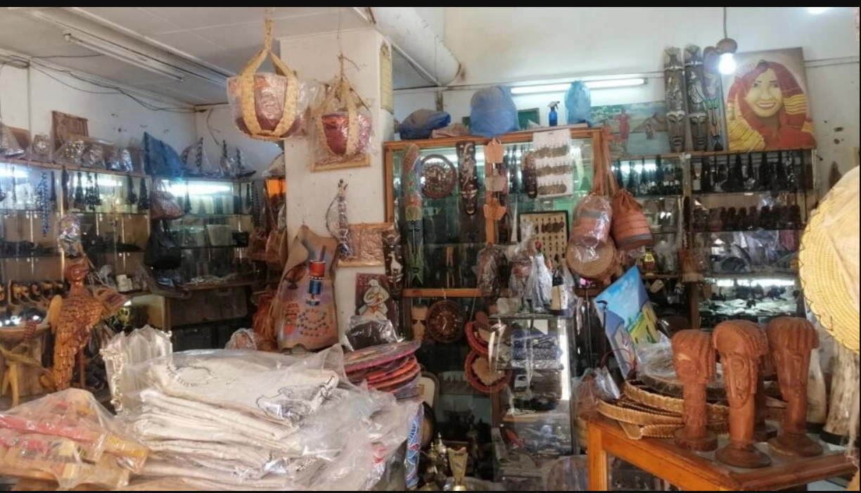 The markets in Sudan provide a wide variety of crafts. Antique trading beads made of colorful glass are frequently found on thick bead strings. Most of the brightly printed cotton traditional wraps worn by ladies are imported. Many traders make their goods in the marketplace: old tin cans are cut and soldered into cooking pans and lamps; tailors make up the loose white gowns worn by men; and leather is punched and stitched into bags and saddles for donkeys and camels.